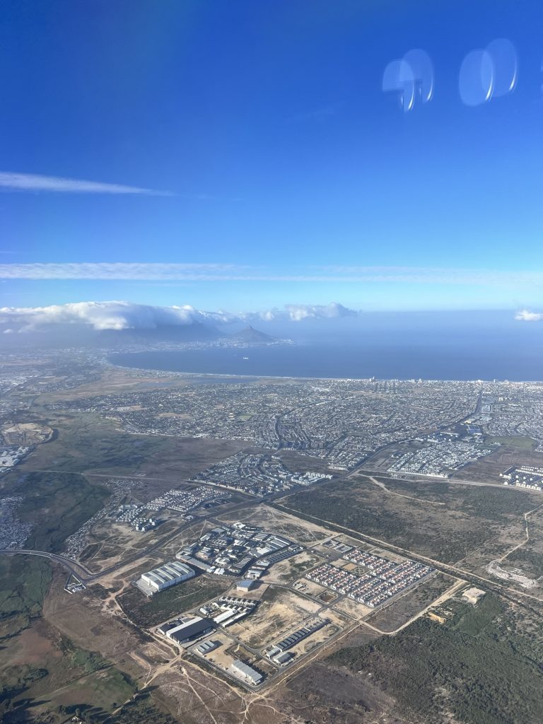 Allein der Anflug auf Kapstadt ist schon immer sehr schön. Gut, wenn man einen Fensterplatz hat!