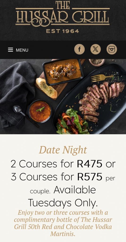 Am Abend, aufgrund einer Empfehlung von Freunden hier, die wir in Neuseeland getroffen hatten, waren wir im Hussar Grill zum Abendessen.