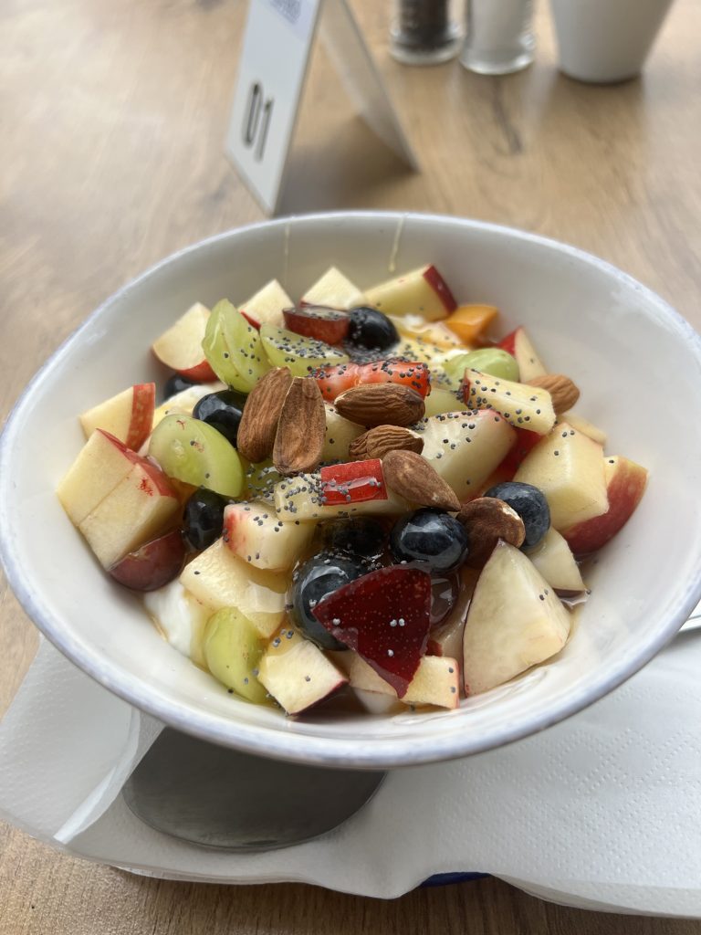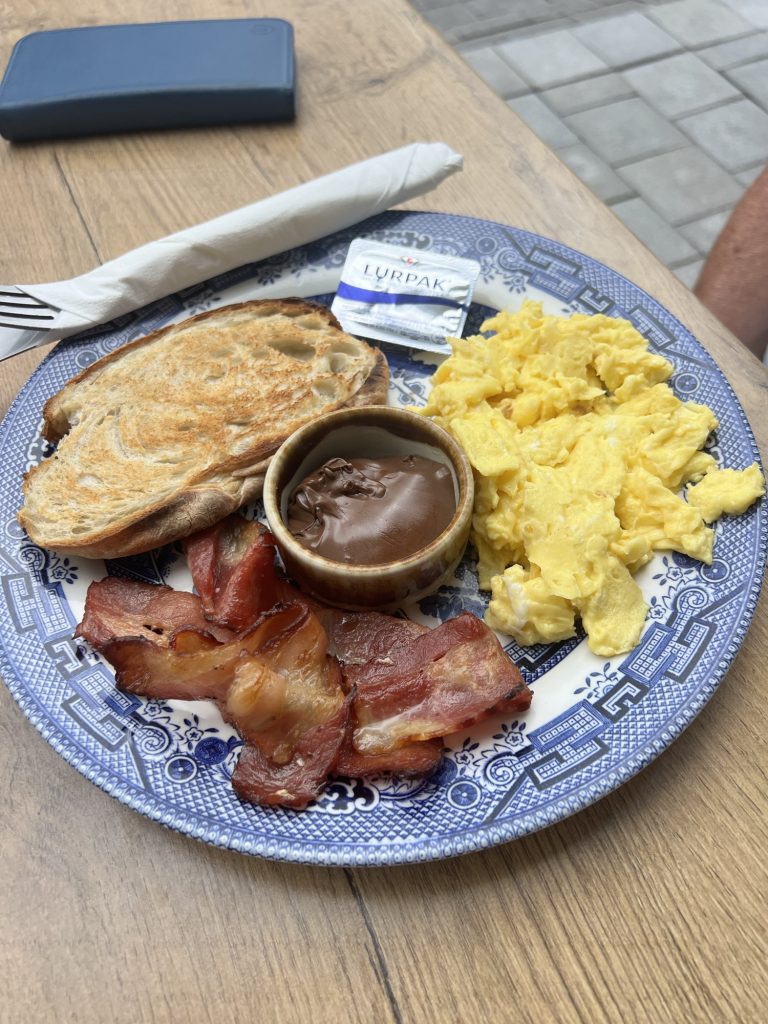 Heute einmal etwas anders, mehr südafrikanisch, Frühstücken im Café Oskars. Naja. Geschmacksache am Morgen.