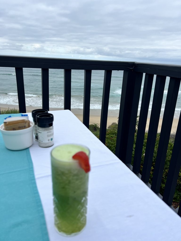 Heute begann der Tag mit Frühstücken draußen und herrlichem Blick aufs Meer.
