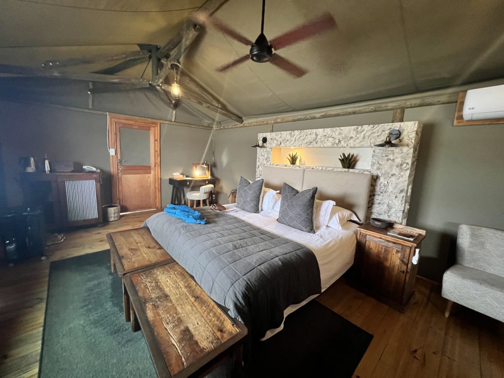 Dann Ankommen in Buffelsdrift, ein kurzer Mittagssnack und dann in unser Zelt. Direkt am DAM, dem See oder großen Wasserloch. Unendlich viele Enten und Vögel. Und sooo laut, Und Tiere direkt am Zelt.