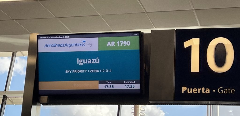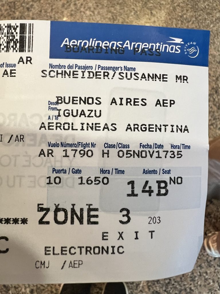 Beim Einchecken haben dann auch verstanden, warum der Online Check in nicht funktioniert hat. Der Flug war überbracht und zunächst hat nur Susanne einen Platz in dem gebuchten und bestätigten Flugzeug bekommen. Nach langem Warten und einem No Show Fluggast haben sie mich dann auch mitgenommen. Na dann – auf zu den Wasserfällen von Iguazu.