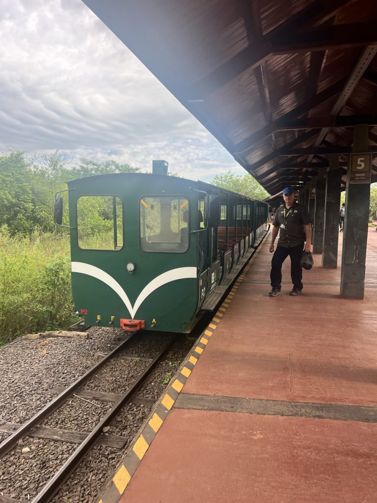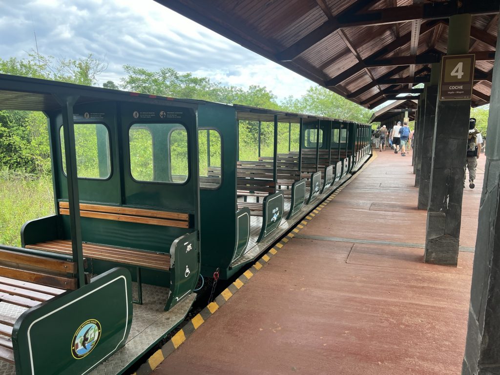 Zum größten der Wasserfälle, dr 40% der gesamten Wassermenge ausmacht, dem Teufelsschlund, sind wir als erstes hin. Zunächst mit der Bahn des Parks.