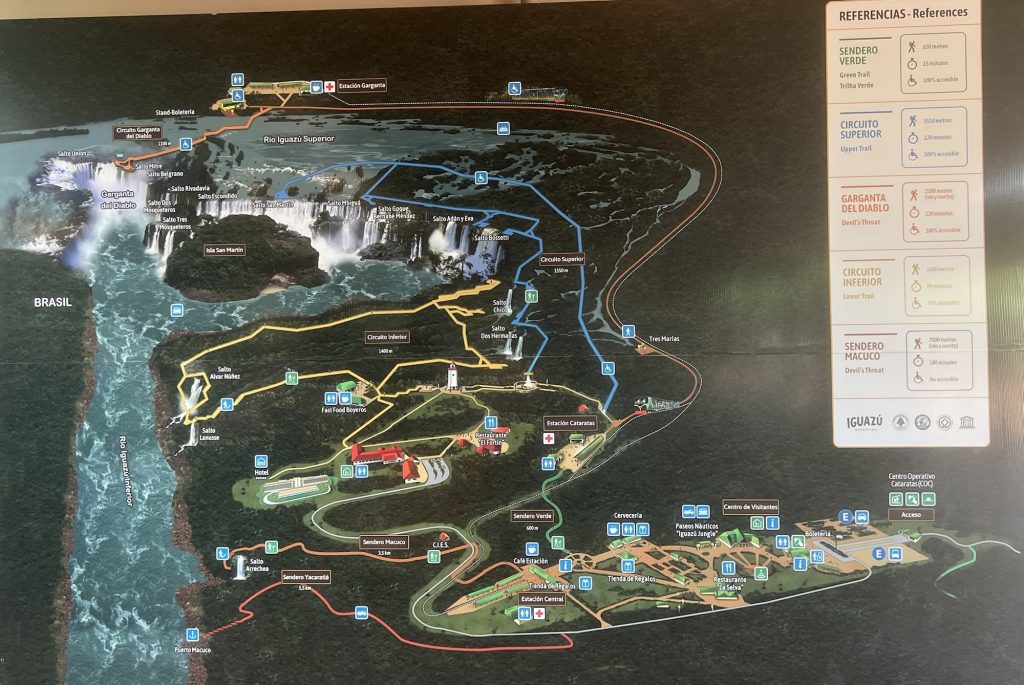 Dann ging’s auf den unteren Weg. Die Wasserfälle haben immer epische Namen wie die zwei Schwestern, Adam und Eva oder einfach nach dem Entdecker. Der Name Iguazú kommt aus der Guaraní-Sprache und bedeutet „Große Wasser“. Eine lokale Legende besagt, dass die Wasserfälle durch den Zorn eines Gottes entstanden sind, der den Fluss teilte, um eine schöne Frau namens Naipí von ihrem Geliebten zu trennen.