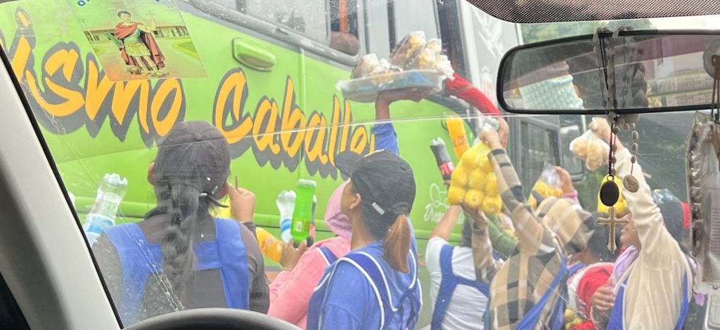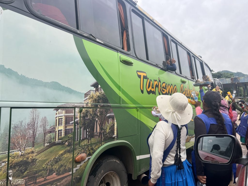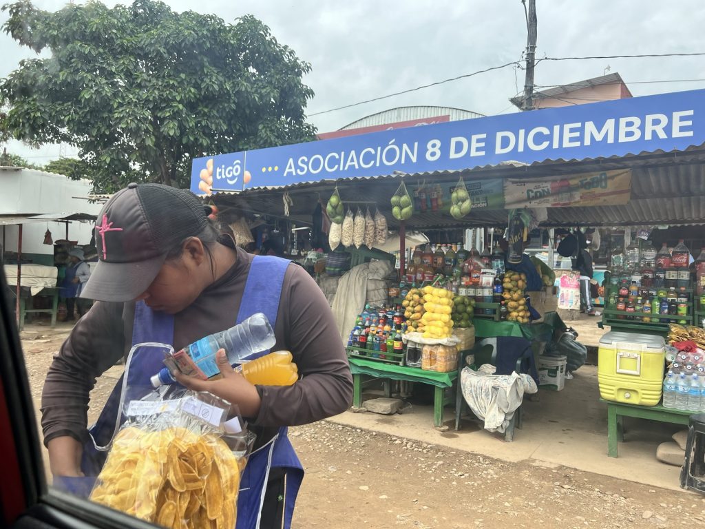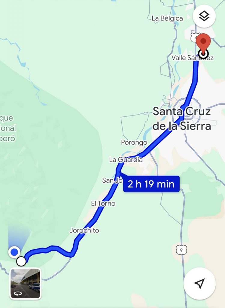 Nun ging es mit 3 Geländefahrzeugen zunächst auf dem Stadtring von Santa Cruz, der größten Stadt Boliviens, in Richtung Südwesten. 3,5 Stunden für knapp 100 km. Straßen recht schlecht mir vielen Bumpern und voll. Dann ein erster Halt mit Frühstück in El Torno.