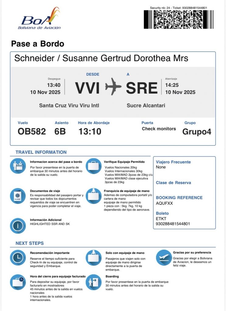 Transfer nach Sucre am 10.11.2024.