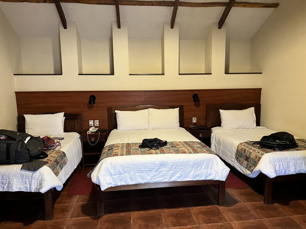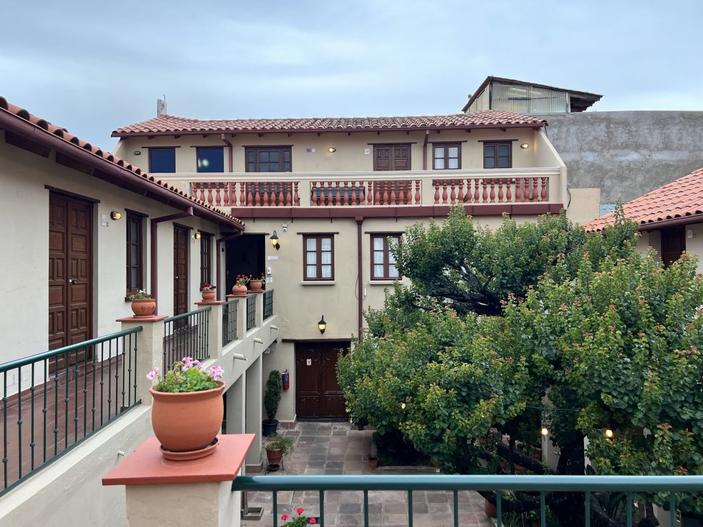 Dann ging es noch knapp 1 Stunde zum Hotel im Kolonialstil in der Innenstadt mit schöner Lage und netten Zimmern. Sucre selbst ist 2.900 Meter hoch. Es wird später noch deutlich höher, aber erst einmal akklimatisieren.