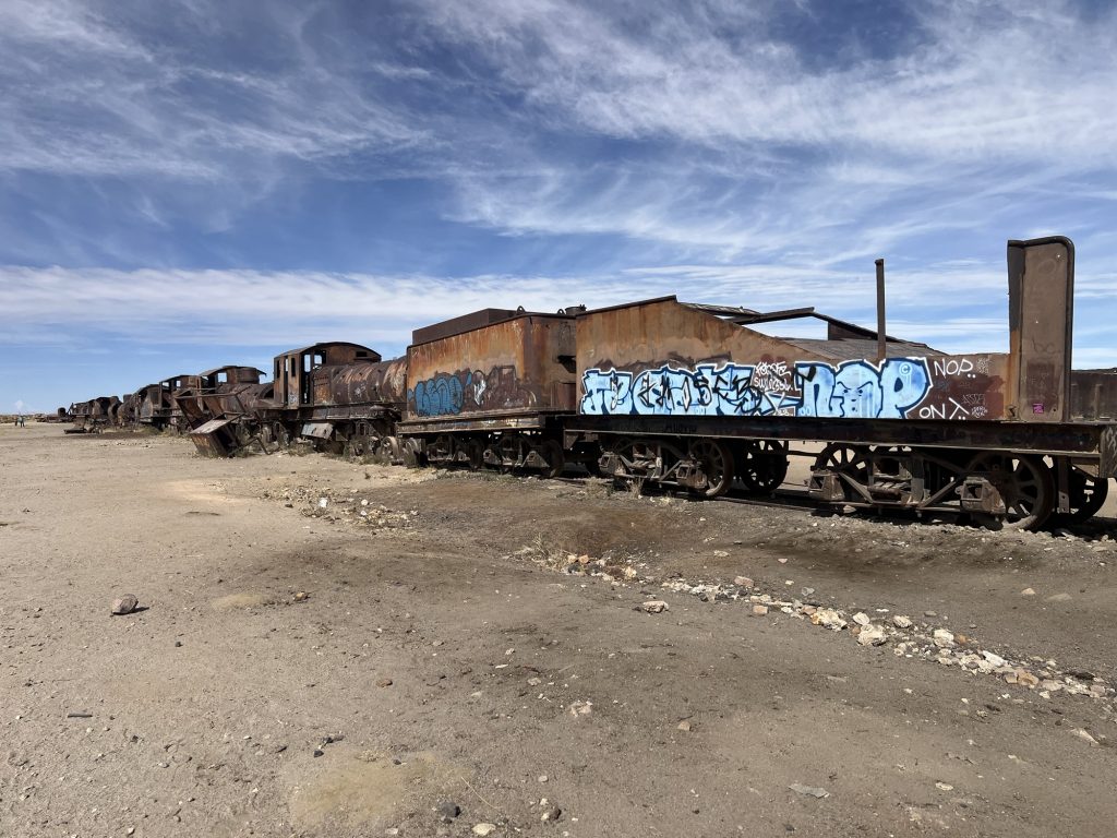 Nach 10 Minuten waren wir am ersten richtigen Stop, dem Eisenbahn Friedhof von Uyuni.