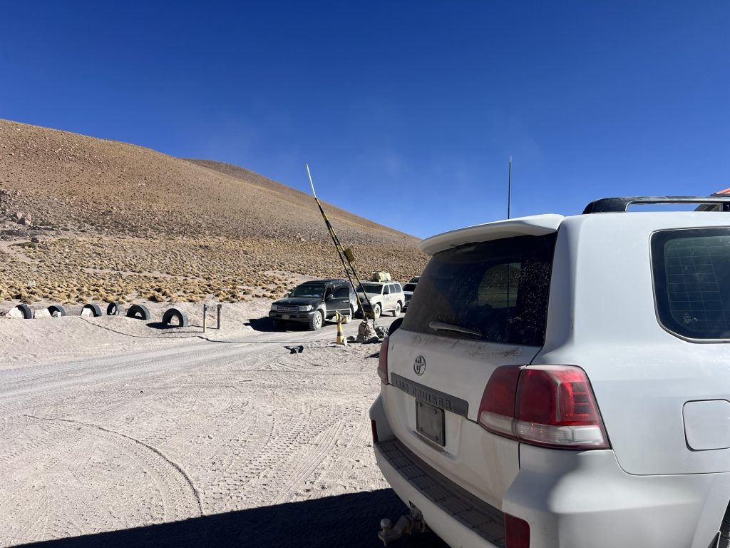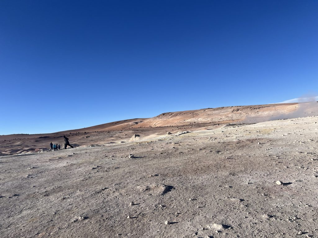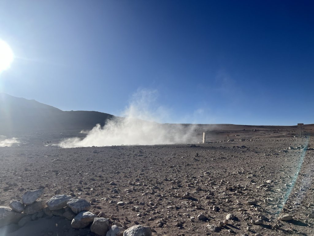 Bei den Geysiren mit extrem viel Wind. Man hat hier auch viel Schwefel und einen tollen Blick auf erloschene Vulkane.