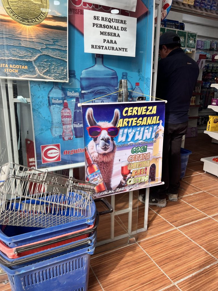 Dann noch einkaufen, vor allem Wasser, denn viel trinken ist sehr wichtig in der Höhe, um Kopfschmerzen vorzubeugen.