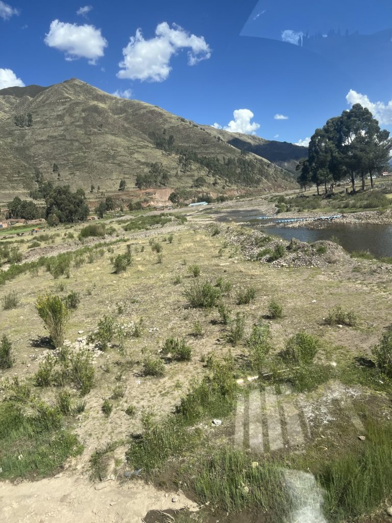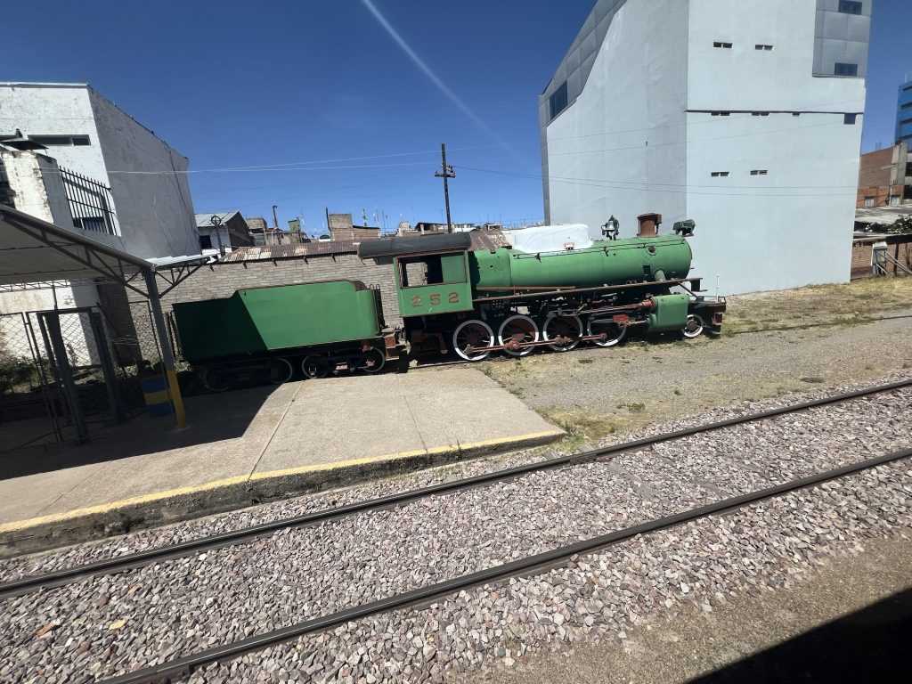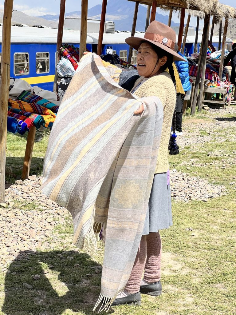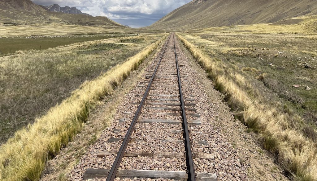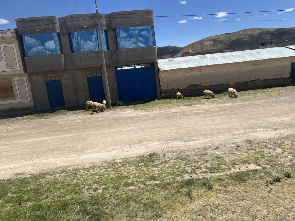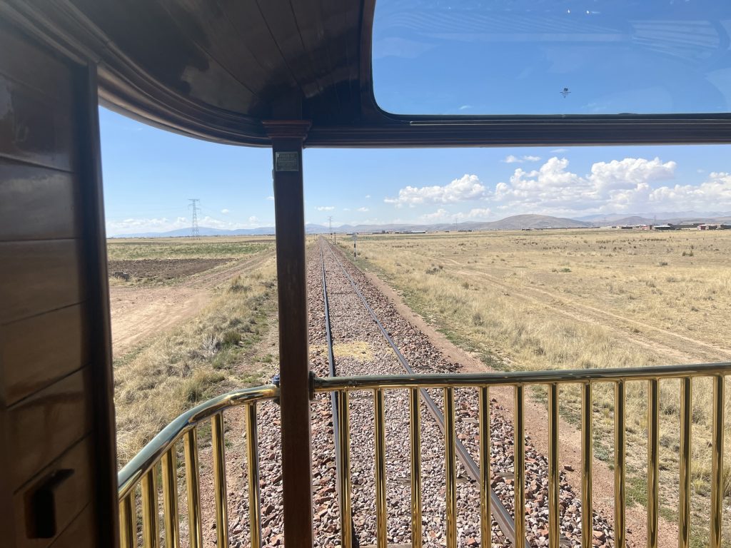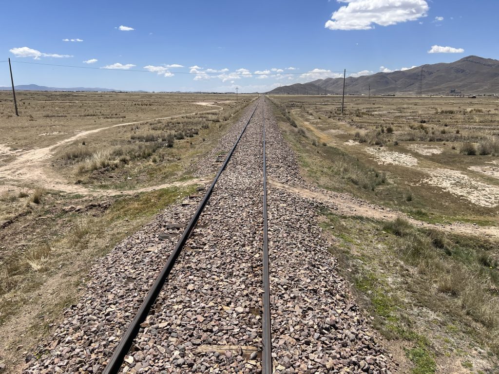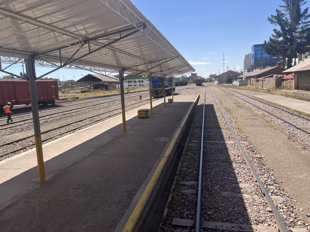 Die Landschaft ist wirklich die ganze Zeit toll, wenn nicht atemberaubend. Der Titicaca See liegt auf knapp 4.000 Metern Höhe, damit Puno auch. Der Zug fuhr zunächst auf dieser Höhe und man konnte immer wieder den See sehen. Einer der größten Orte unterwegs erwartet uns bereits nach gut einer Stunde Fahrt. Es ist Juliaca. Für peruanische Verhältnisse ein Eisenbahn Knotenpunkt, wenn auch ein kleiner, aber doch mit mehreren Gleisen. Der Zug fährt mitten durch die Stadt. Teilweise ganz nah an Gebäuden, deren Markisen