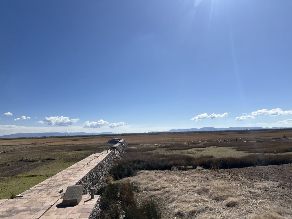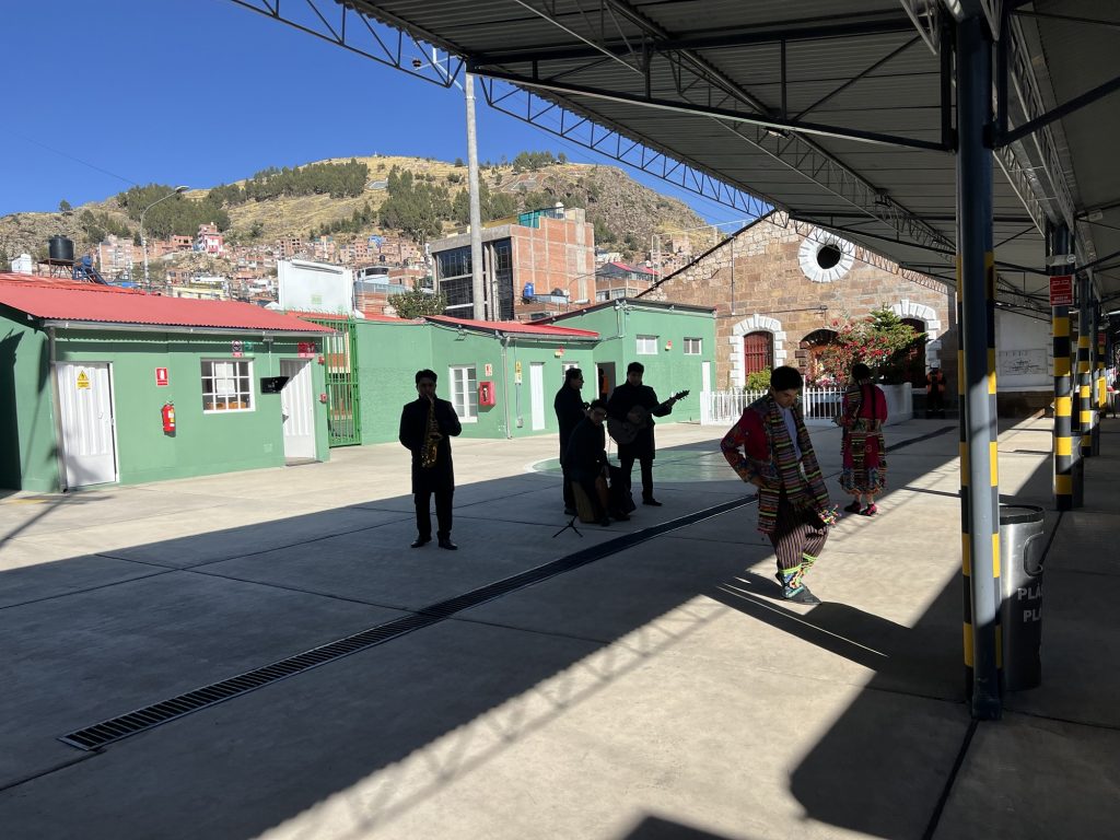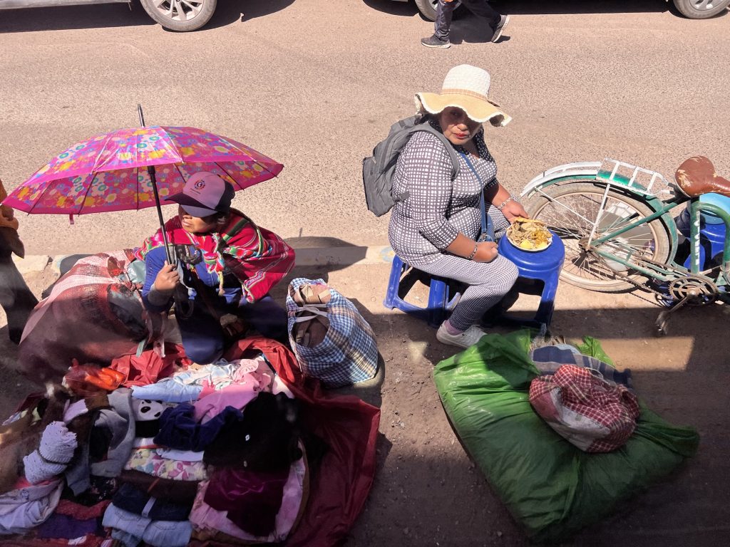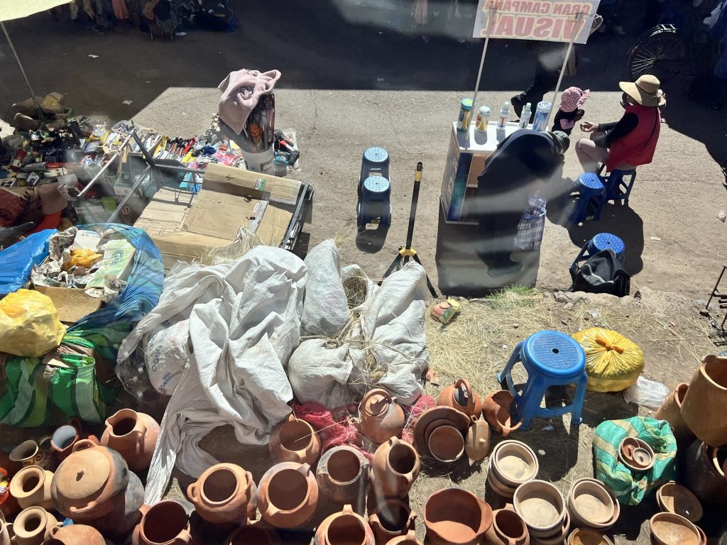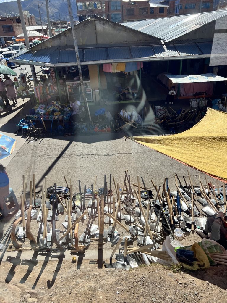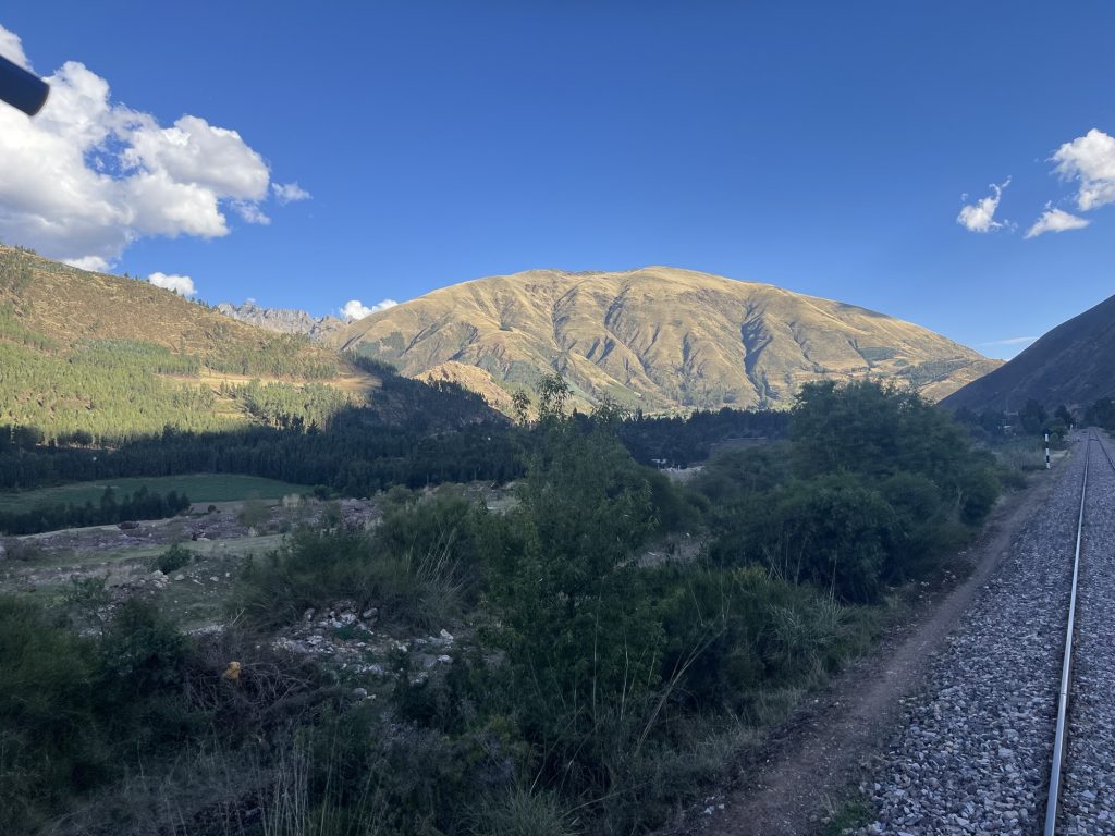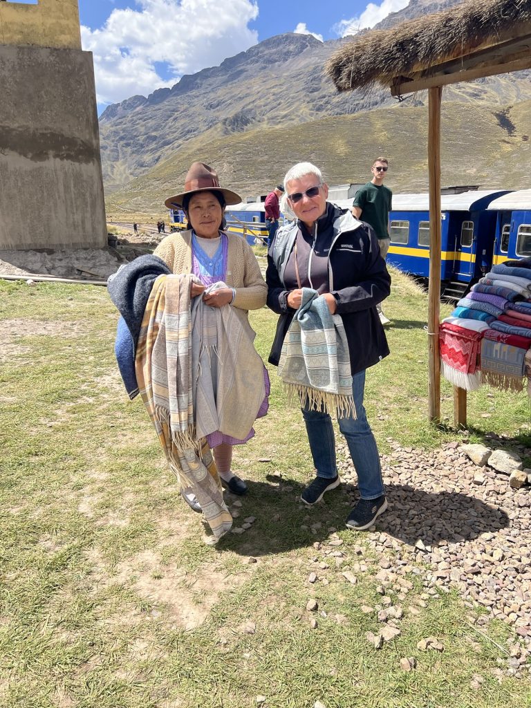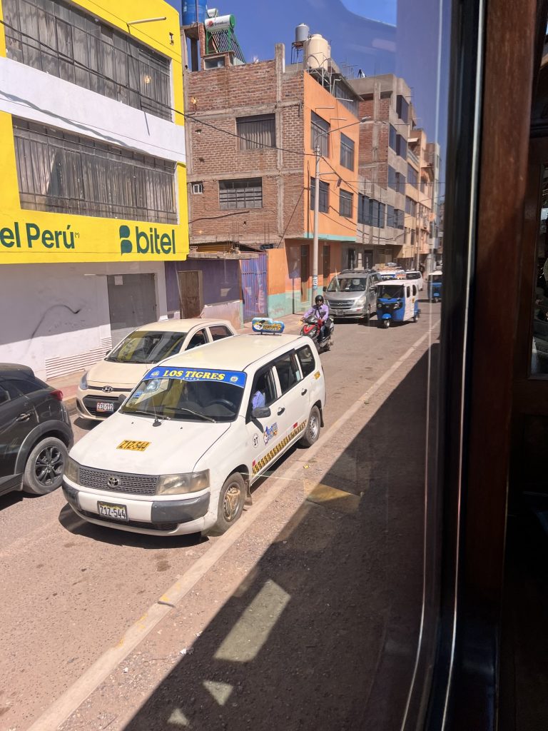 Die Landschaft ist wirklich die ganze Zeit toll, wenn nicht atemberaubend. Der Titicaca See liegt auf knapp 4.000 Metern Höhe, damit Puno auch. Der Zug fuhr zunächst auf dieser Höhe und man konnte immer wieder den See sehen. Einer der größten Orte unterwegs erwartet uns bereits nach gut einer Stunde Fahrt. Es ist Juliaca. Für peruanische Verhältnisse ein Eisenbahn Knotenpunkt, wenn auch ein kleiner, aber doch mit mehreren Gleisen. Der Zug fährt mitten durch die Stadt. Teilweise ganz nah an Gebäuden, deren Markisen