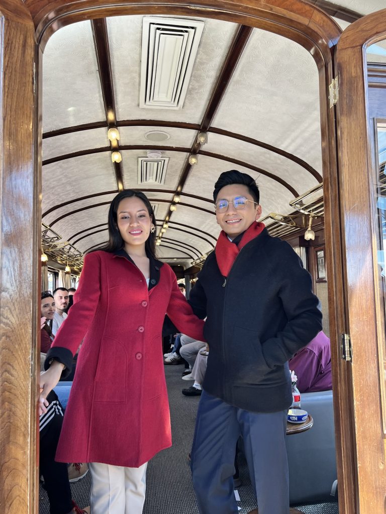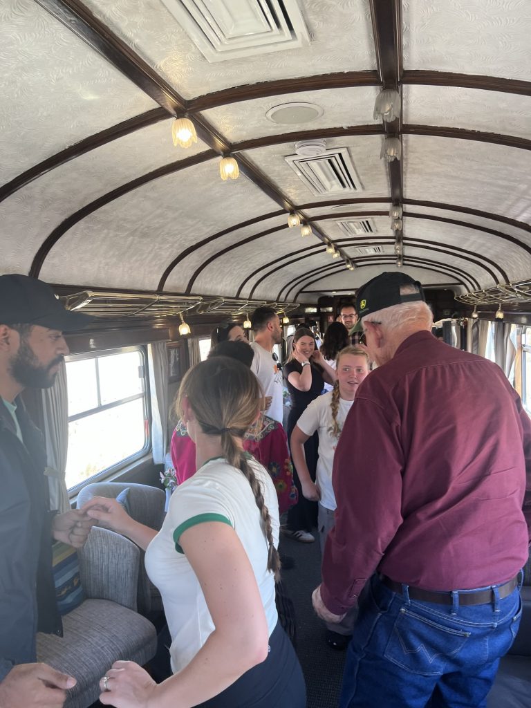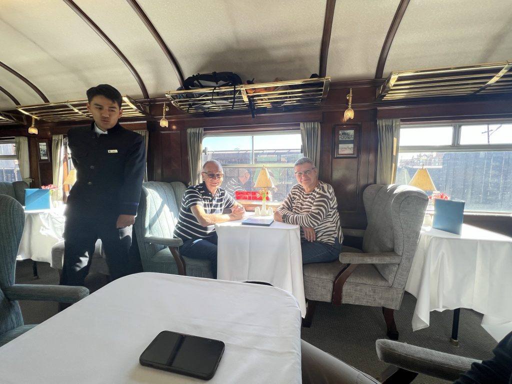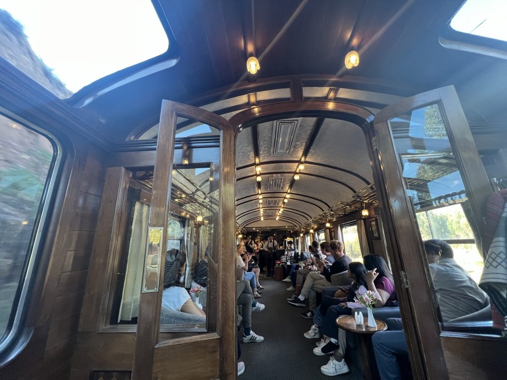 Im Zug beginnt dann nun das Unterhaltungprogramm mit Live Musik einiger internationaler und dann landestypischer Hits. Dabei auch Tanzvorführungen aus der Region Puno. Und danach die Modenschau. Das alles bei Snacks und Freigetränken, auch alkoholisch. Am Ende tanzen alle zusammen.