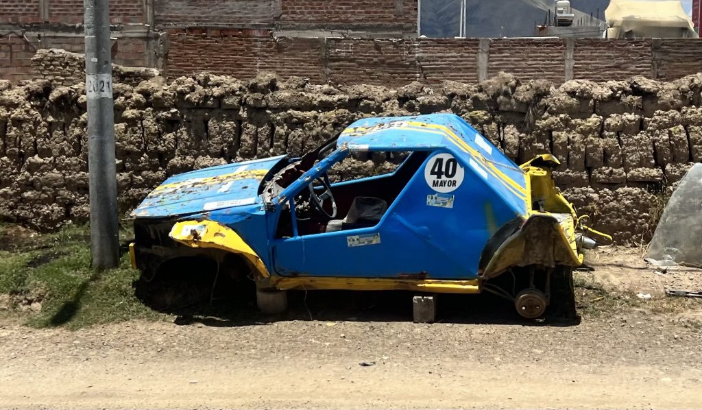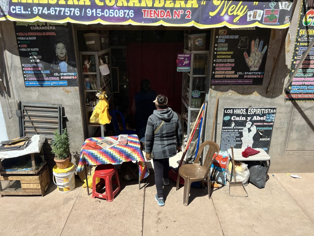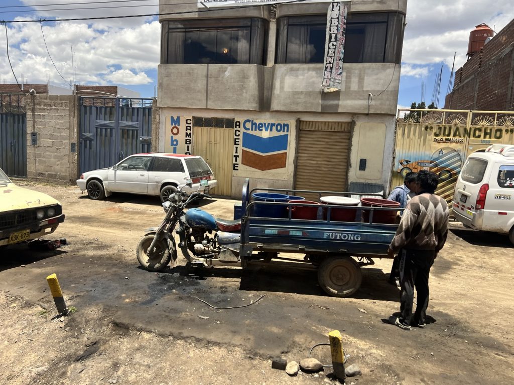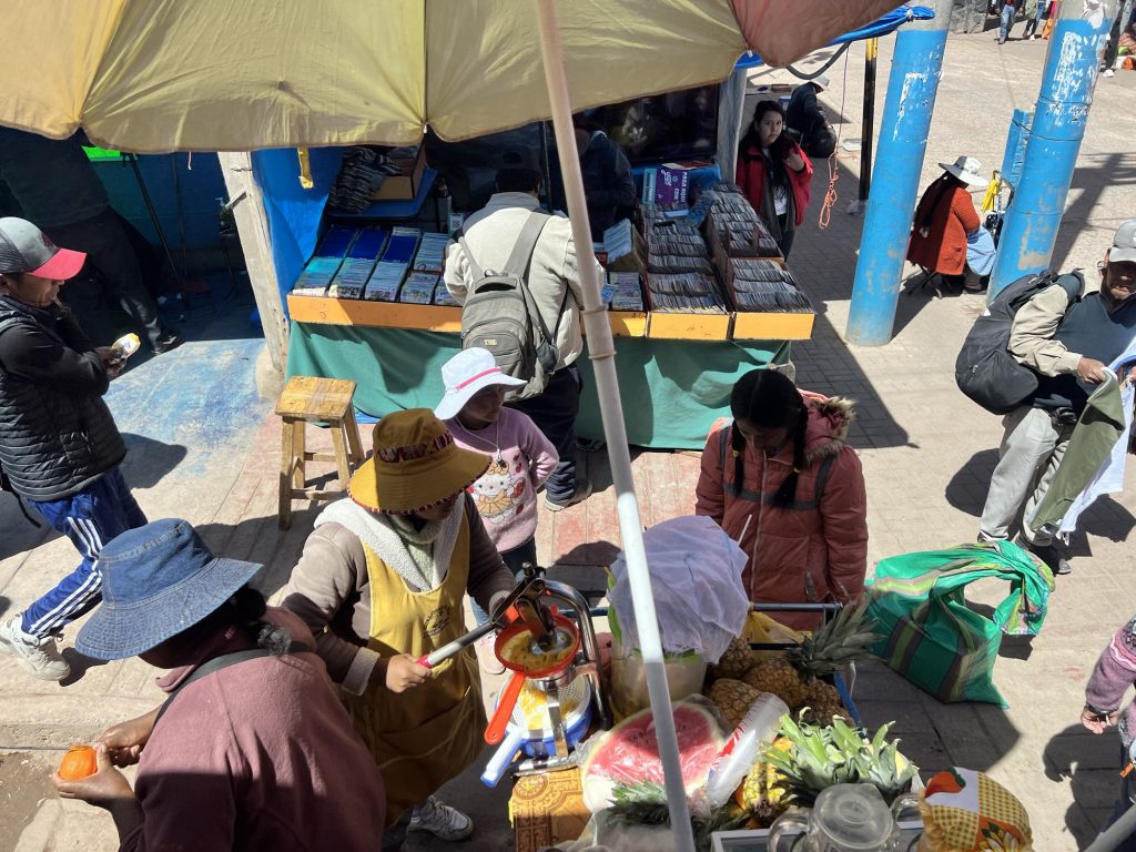 Die Ortsdurchfahrt durch Sicuani mit Märkten, einer alten Drehscheibe und dem Tor, das hinter dem Zug verschlossen wurde.