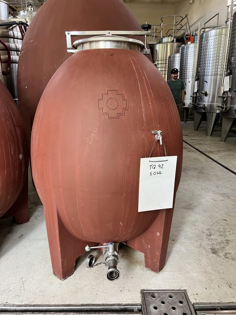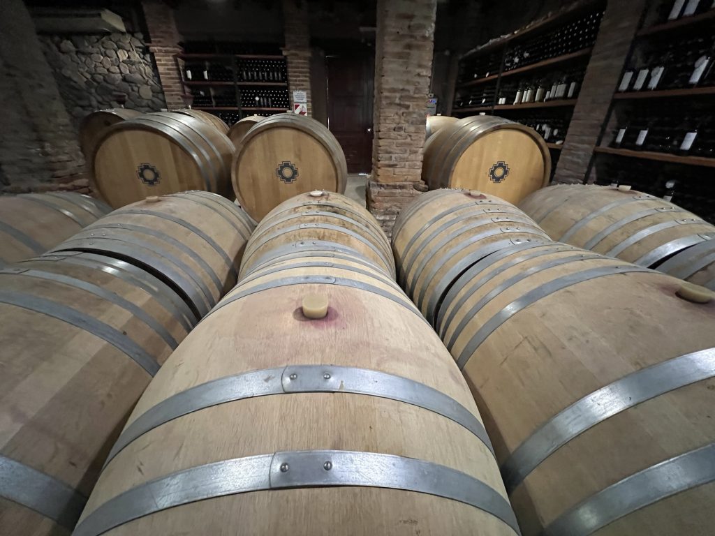 Neben den oben zu Stehenden Zementeiern auch ein toller Weinkelker mit Fässern …