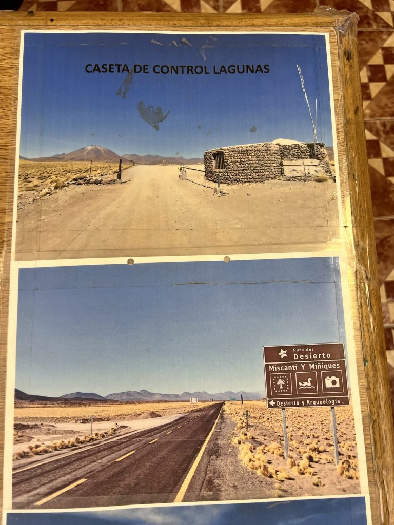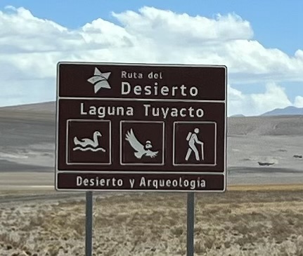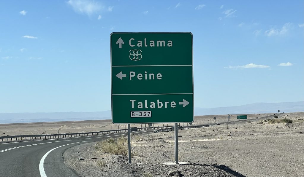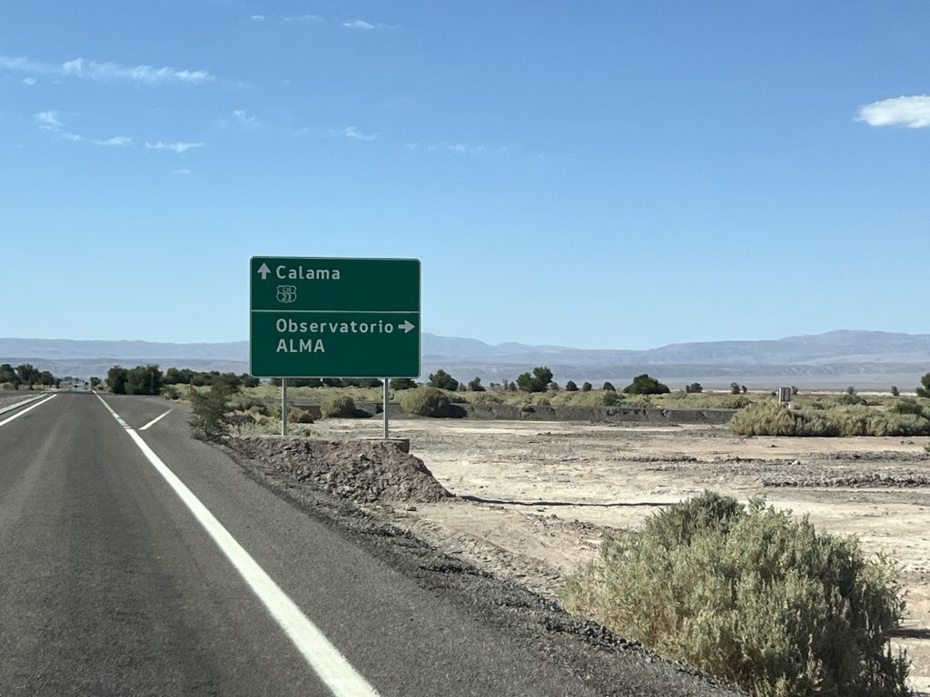 Und dann einige Schilder und letzte Impressionen, auch ein Hinweis auf der Ort Peine, aber nicht der nahe der alten Heimat bei Braunschweig. Auch ein kurzer Blick auf die ALMA Zufahr, ein großes Observatorium hier.