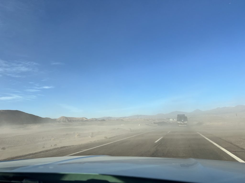 Es war dann extrem windig. Staub überall in der Luft. Wir sind trotzdem los zum Sonnenuntergangs-Spot