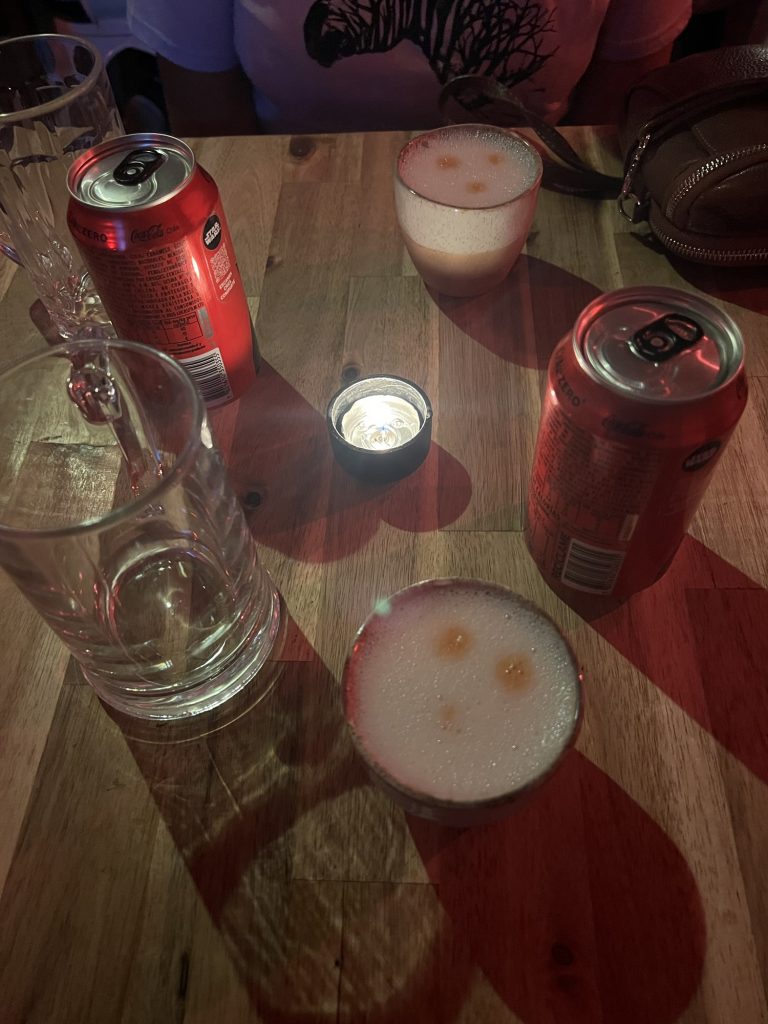Im Ort noch den erst zweiten Pisco Sour auf der Reise u d eine Coke mit Yoda sowie ein kleinen Burger für jeden.
