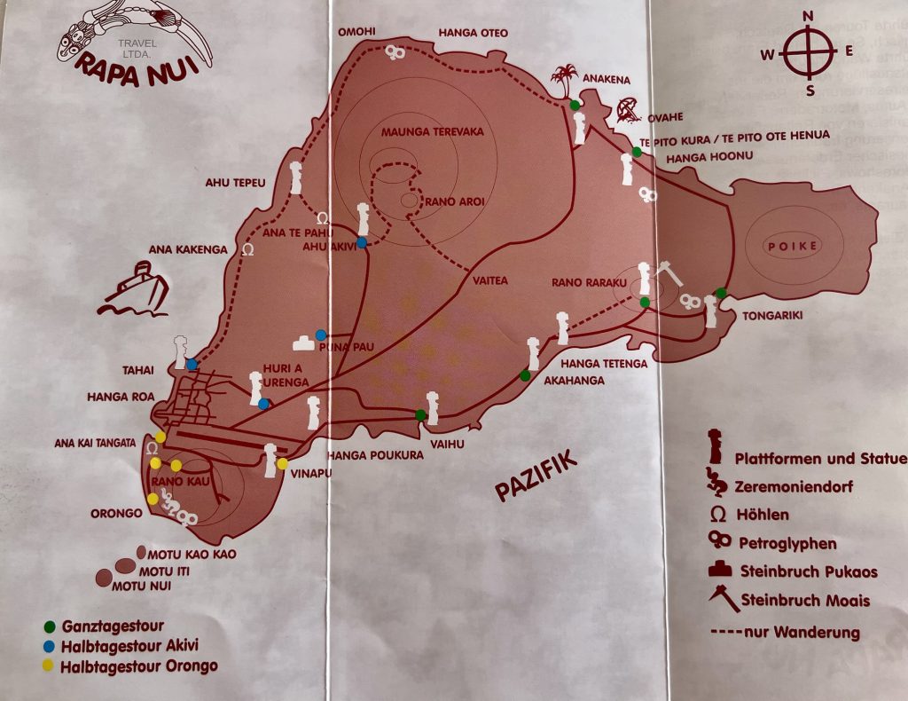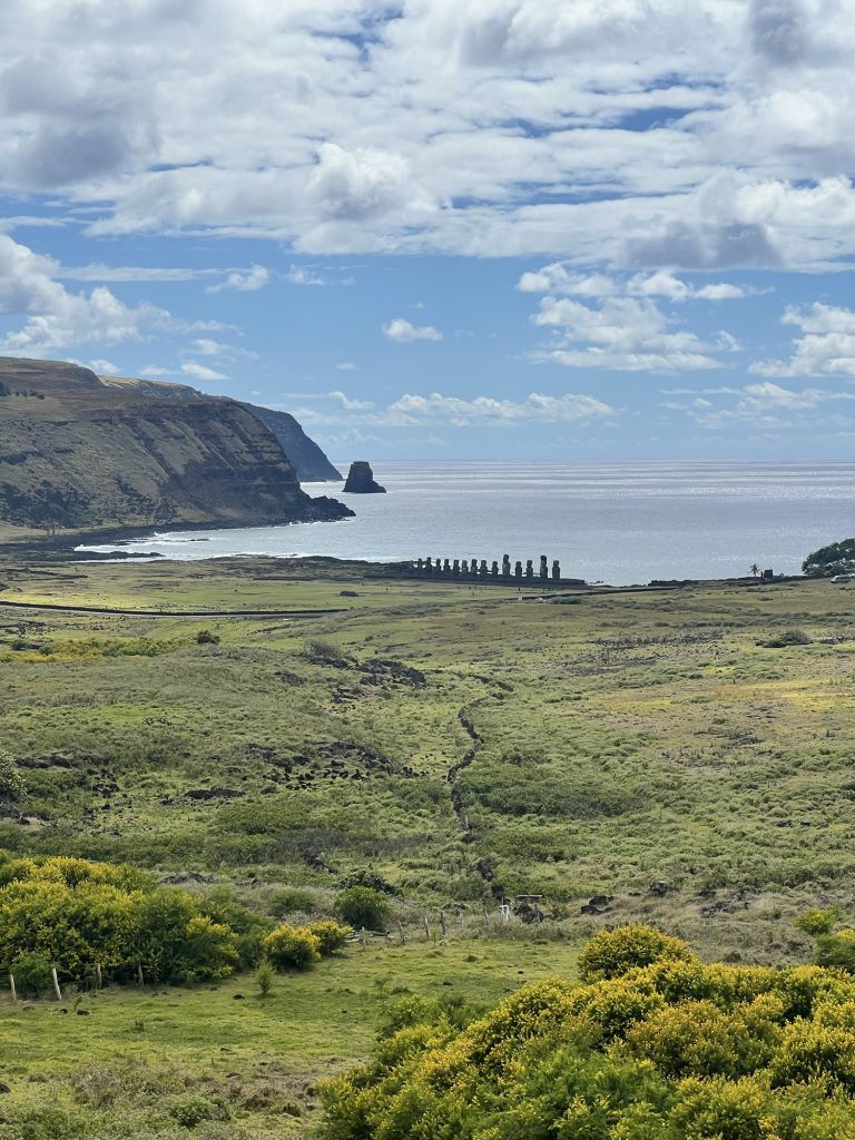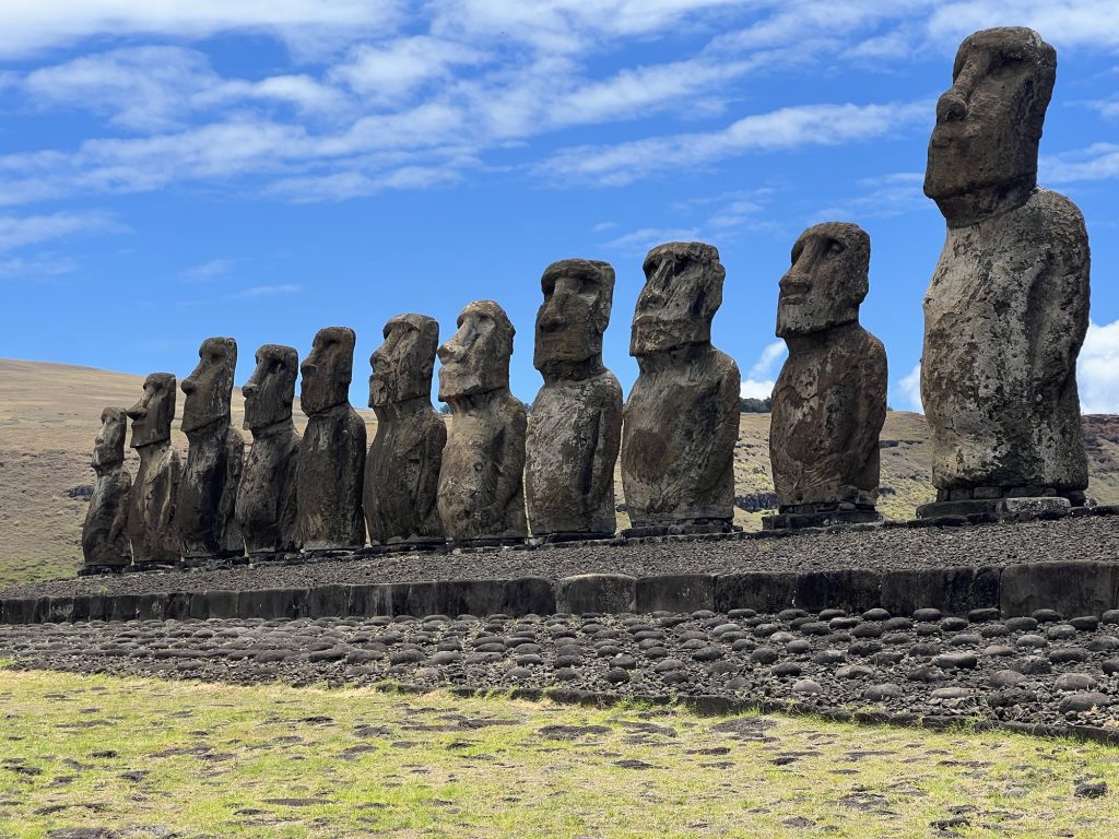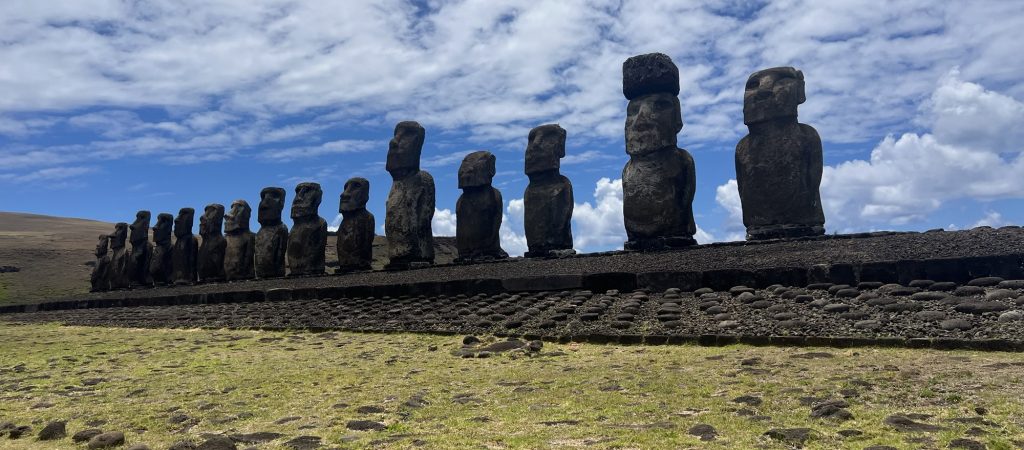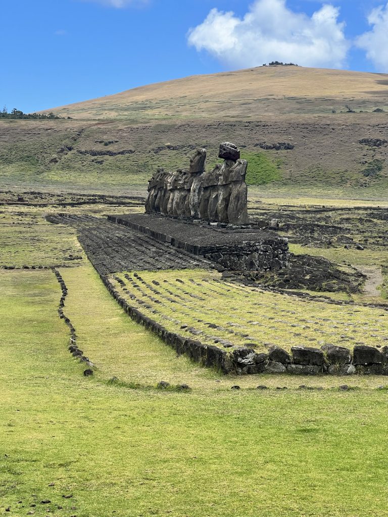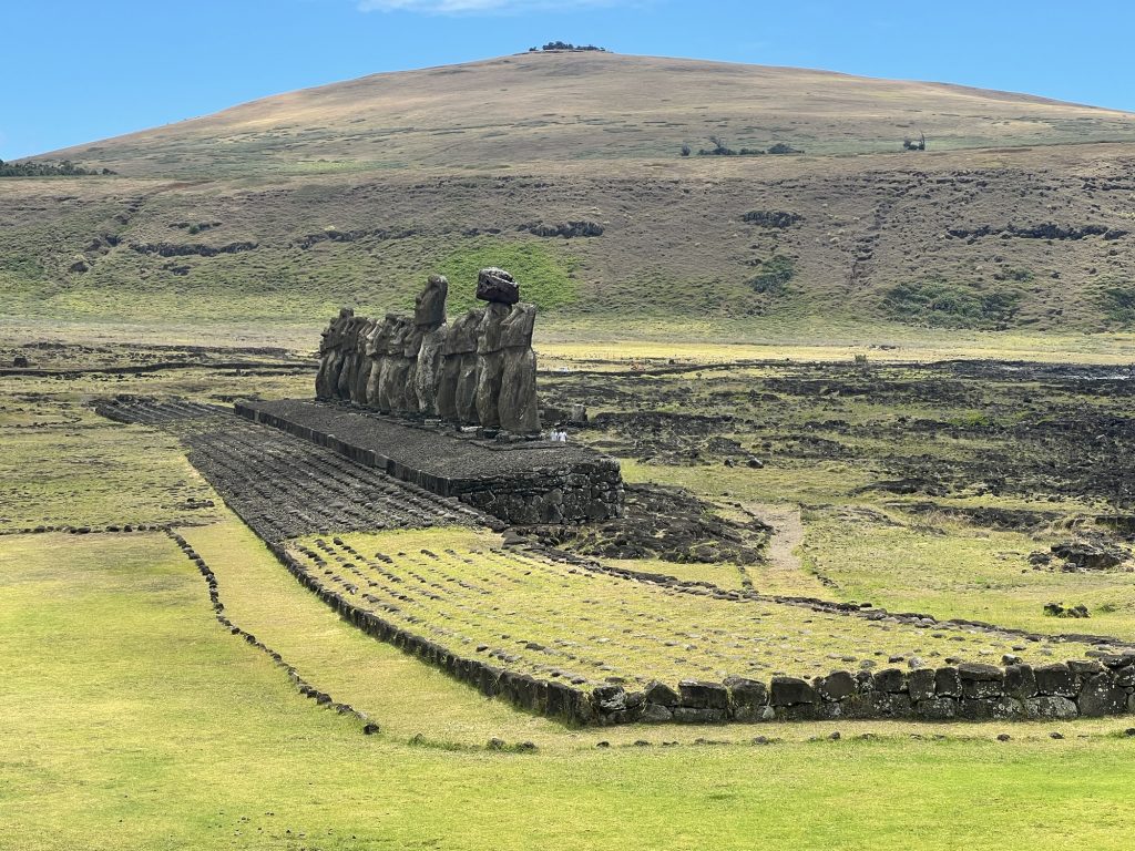 Die wohl bekannteste Anlage ist die von Tongariki. Hier gibt es die meisten Fotos und diese haben wir auch aus der Ferne von der AIDA am 06.12.2022, also vor fast genau 3 Jahren. Als wir die Insel nicht betreten durften.